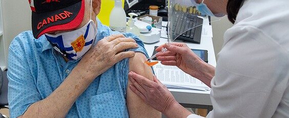 Louis Moro, 93, receives the Pfizer-BioNTech COVID-19 vaccine from Vena Anderson at a pharmacy prototype clinic in Halifax on March 9, 2021. PHOTO BY ANDREW VAUGHAN/THE CANADIAN PRESS